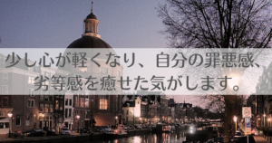 ご感想:少しだけ心が軽くなり、自分の罪悪感・劣等感を癒せた気がします。